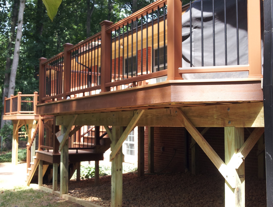 , " Removed old wood deck and built a new, deck including new footers and posts. The new deck has composite flooring, & railing top, aluminum balusters."